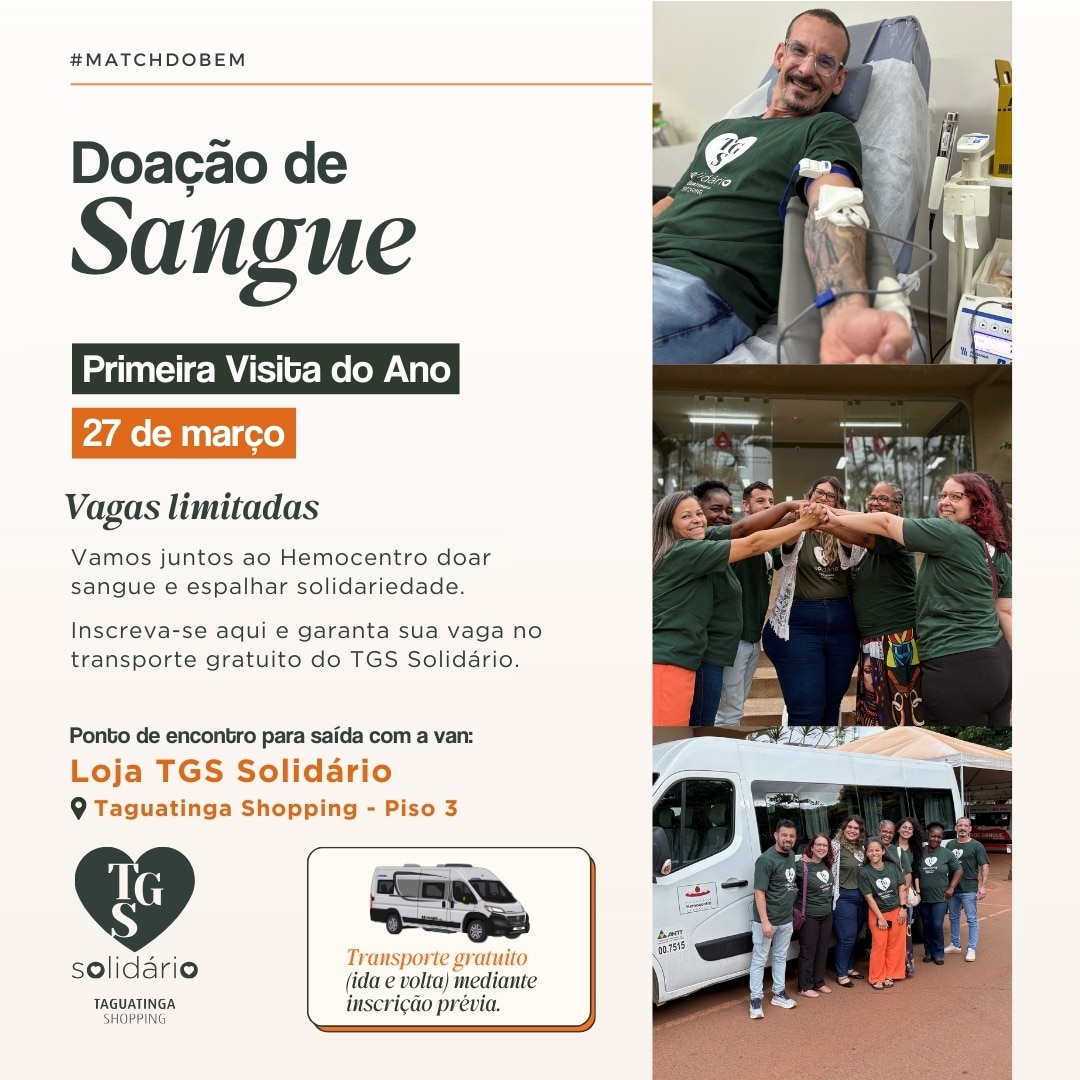 Para facilitar a participação, o Hemocentro disponibilizará translado de ida e volta ao Taguatinga Shopping.