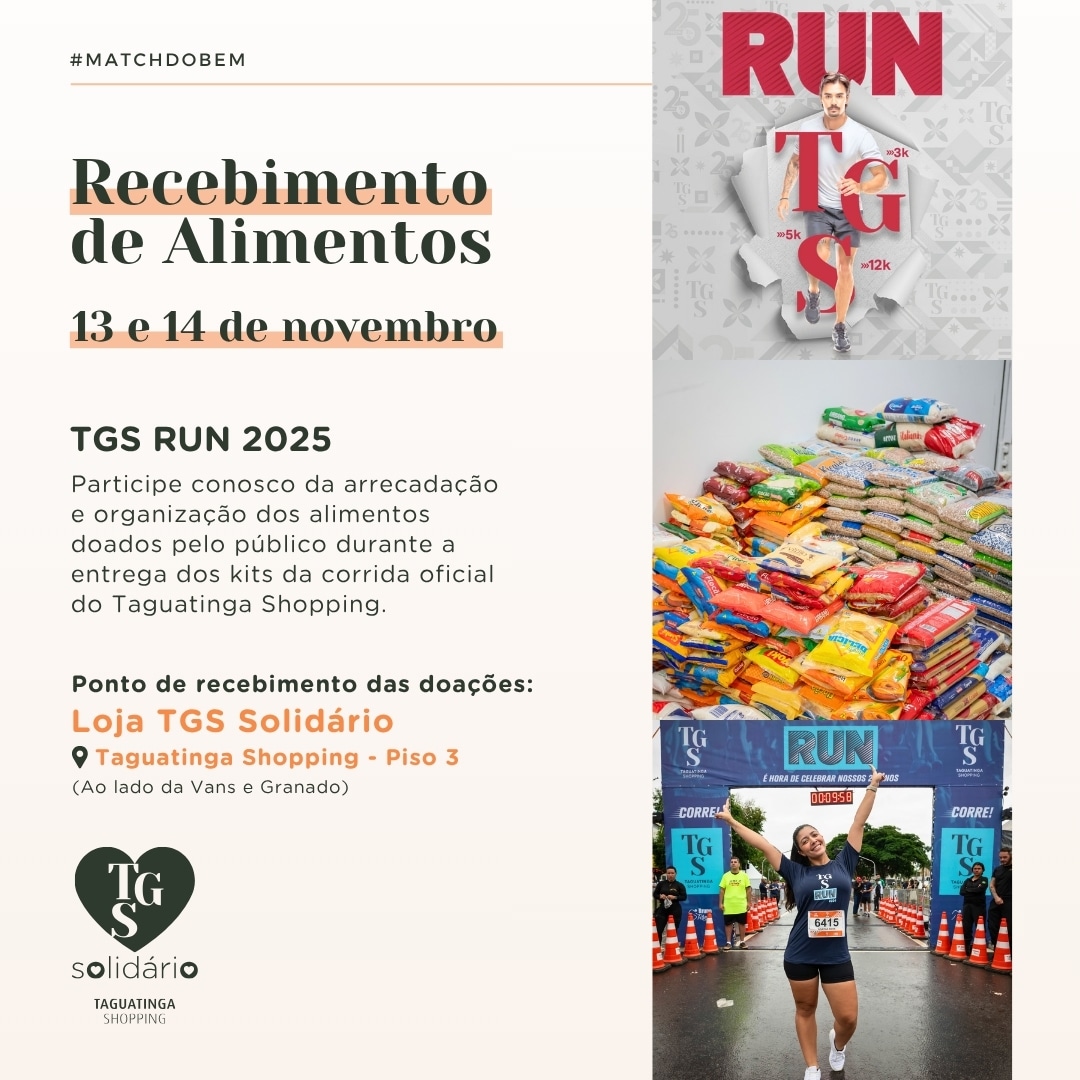 Taguatinga Shopping QS 01 Lote 40 - Taguatinga, BrasíliaNos dias 13 e 14/11, durante a retirada dos kits da TGS RUN, o TGS Solidário vai arrecadar alimentos e precisamos da sua energia nessa missão! 💪 Quais serão as […]